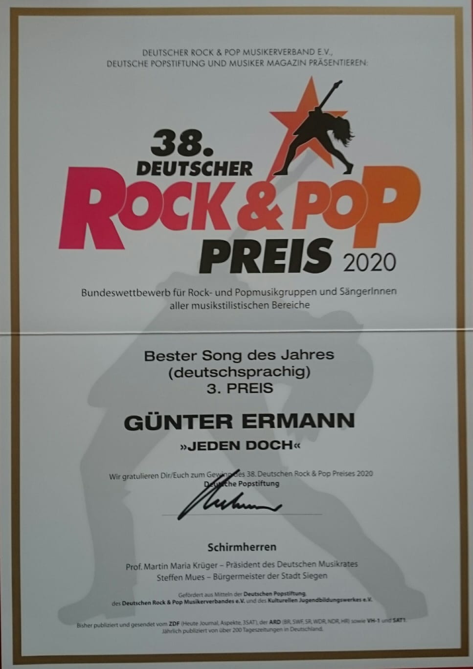 Herzlichen Glückwunsch an Günter Ermann! 3 x 3. Platz